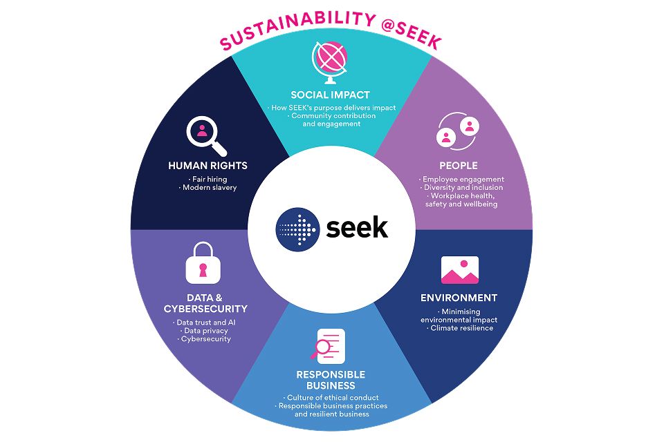 SEEK’s approach to sustainability continues to focus on areas where SEEK can have a positive impact and address key areas important to stakeholders. The sustainability risks and opportunities that could impact SEEK’s ability to sustain future financial performance and deliver on its long-term strategy, along with those that further SEEK’s purpose.