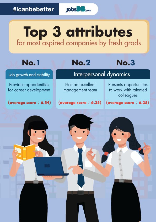 Fresh graduates who participated in the survey said they would apply to companies with career-advancement opportunities, professional management, outstanding leaders, and quality colleagues because these things would enhance their skills and experiences.