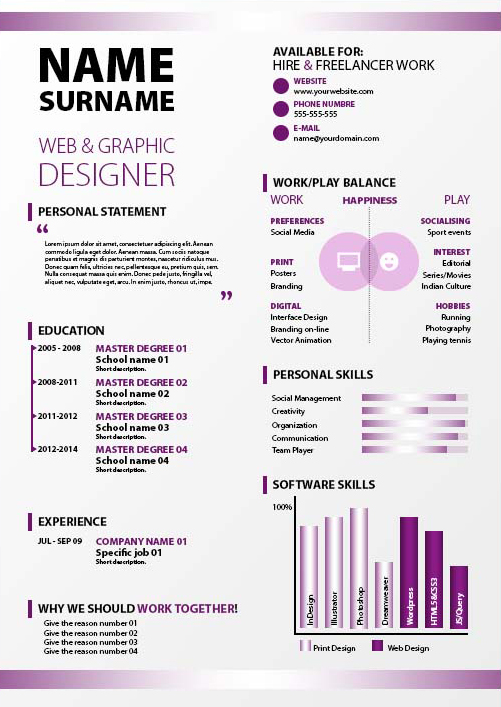 ทั้งนี้การสร้างสรรค์ resume นั้นก็ควรคำนึงถึงความเหมาะสมของตำแหน่งงานที่เราสมัครด้วย หากเป็นสายงานที่ต้องการความน่าเชื่อถือมาก ๆ ก็ควรลดสีสัน หรือตัว infographic ลง เพื่อภาพพจน์ที่ดี แต่หากเป็นสายงานที่ต้องการความคิดสร้างสรรค์มาก ๆ เช่น งานกราฟฟิคดีไซเนอร์ ก็สามารถจัดเต็มได้เลย ตามความสามารถ และเป็นตัวของตัวเอง