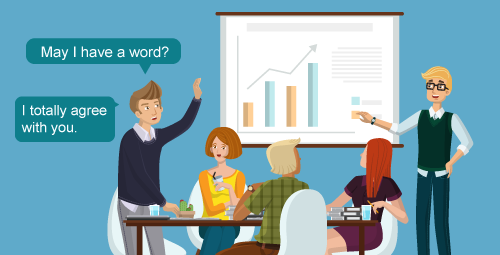 เมื่อบริษัทข้ามชาติหรือชาวอาเซียนไปมาหาสู่ติดต่อธุรกิจกันมากขึ้น การเข้าประชุมกับชาวต่างชาติเป็นสถานการณ์หนึ่งที่คนทำงานจำเป็นต้องใช้ภาษาอังกฤษอย่างมืออาชีพ เพื่อที่จะสามารถสื่อสารเข้าใจกันได้ สามารถแลกเปลี่ยนความคิดเห็นในที่ประชุมได้ ทำให้การทำธุรกิจเป็นไปอย่างราบรื่น แต่ปัญหาที่มักพบเสมอ คือคนไทยไม่กล้าแสดงความคิดเห็น ยิ่งเป็นภาษาอังกฤษด้วยแล้ว ยิ่งอยากจะทำตัวให้เล็กที่สุด เพื่อที่จะไม่ต้องพูดอะไร ชอบที่จะหลบมุม นั่งฟังเงียบ ๆ มากกว่า และปล่อยให้คนที่พูดภาษาอังกฤษได้เป็นตัวเอกเสมอ ลองคิดดูว่า หากคุณไม่กล้าฉายแววให้ตัวเองโดดเด่นออกมาจากคนอื่น ๆ คุณก็จะกลายเป็นคนไม่สำคัญ และอาจถูกลืมในที่สุด แล้วต่อไปในอนาคตข้างหน้า คนที่ถูกลืมอย่างคุณจะมีโอกาสเติบโตไปได้มากน้อยสักแค่ไหน?