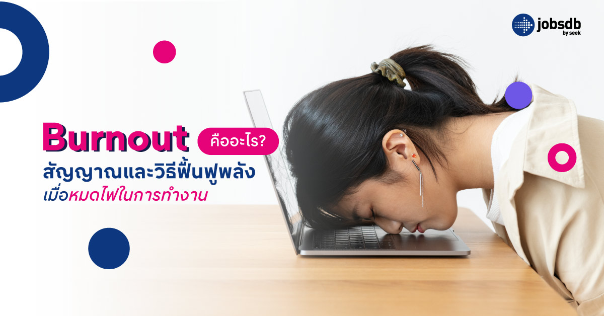 - Burnout คือภาวะความเหนื่อยล้าและหมดไฟที่สะสมจากความเครียดและการทำงานหนักโดยไม่มีการฟื้นฟูทางจิตใจและร่างกาย จนอาจทำให้ขาดแรงจูงใจในการทำงานและส่งผลต่อสุขภาพจิตและกาย