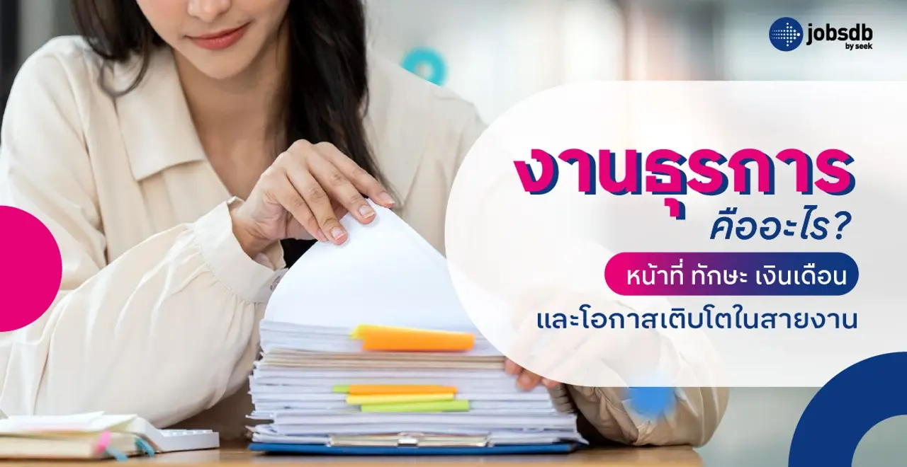 งานธุรการคือบทบาทสำคัญที่ช่วยสนับสนุนการดำเนินงานขององค์กรให้เป็นระบบ ผ่านการจัดการเอกสาร การประสานงาน และการดูแลงานสำนักงานด้านต่างๆ พนักงานธุรการสามารถทำงานได้หลายรูปแบบ เช่น ธุรการทั่วไป ธุรการบัญชี ธุรการบุคคล หรือธุรการฝ่ายขาย โดยผู้ที่เหมาะกับงานสายนี้ควรมีทักษะด้านเอกสาร การสื่อสาร การใช้คอมพิวเตอร์ และการบริหารเวลา เงินเดือนของสายงานธุรการจะแตกต่างกันตามประสบการณ์ ตั้งแต่ระดับจบใหม่ไปจนถึง Senior Admin