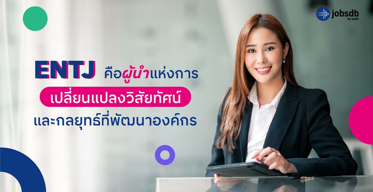 ENTJ คือบุคลิกภาพที่มีพลังและมุ่งมั่น มักจะมีบทบาทสำคัญในองค์กรหรือทีมงาน โดยใช้ความสามารถในการวิเคราะห์และการตัดสินใจที่มีเหตุผลเพื่อผลักดันให้เกิดความสำเร็จได้ นอกจากงานที่แนะนำแล้ว สามารถหางานอื่นๆ ที่สนใจเพิ่มเติมได้ใน Jobsdb เช่นกัน ไม่ว่าจะเป็นนักศึกษาจบใหม่ หรือผู้ที่ต้องการเปลี่ยนงานก็สามารถหางานได้ง่ายๆ ก่อนใครได้ผ่านเว็บไซต์ หรือแอปพลิเคชันบนมือถือ