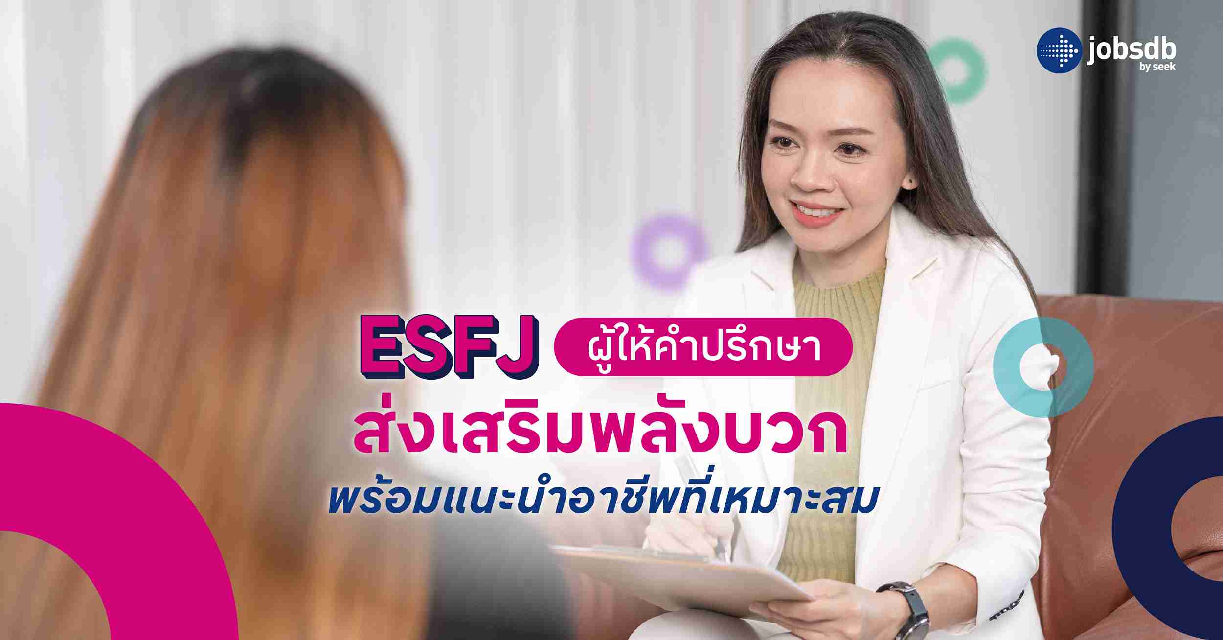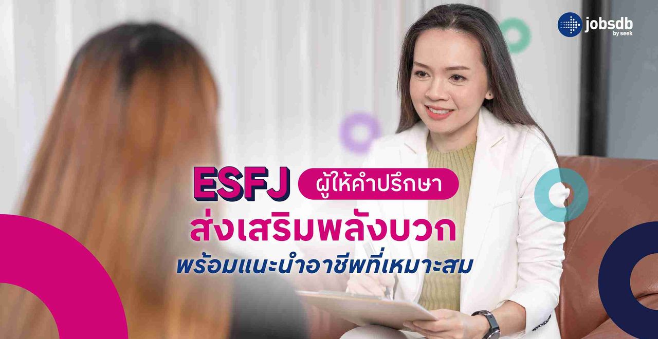 หากรู้บุคลิกตนเอง เช่น ESFJ คือบุคลิกผู้ให้คำปรึกษาและส่งมอบพลังบวกให้ผู้อื่น เราก็สามารถพัฒนาจุดแข็งและจัดการกับจุดอ่อนได้ดี และค้นหาอาชีพที่เหมาะสมกับบุคลิกของตนเองได้ง่าย เพียงงคลิกเดียวผ่าน Jobsdb แพลตฟอร์มหางานแบบครบวงจรหนึ่งเดียวในไทย ค้นหาได้ทุกอาชีพ พร้อมบริการจากผู้เชี่ยวชาญตลอด 24 ชั่วโมง ส่งถึงมือ HR อย่างแน่นอน