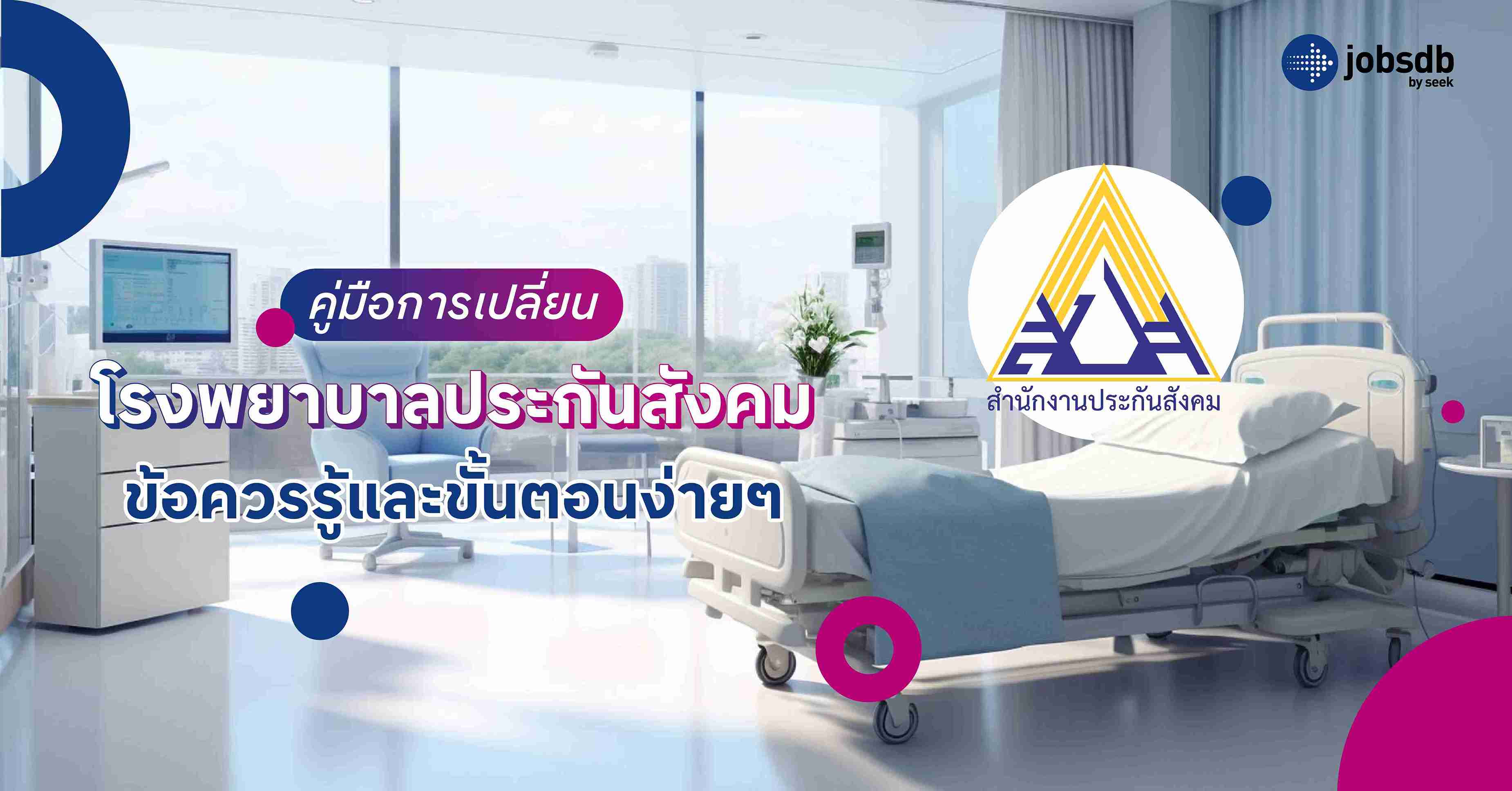 คุณสามารถหางานผ่าน Jobsdb ตามบริษัท ตำแหน่ง และเงินเดือน เพื่อพบบริษัทที่อาจให้คำปรึกษาเรื่องการเปลี่ยนโรงพยาบาลประกันสังคม โดยสอบถามข้อมูลจากฝ่ายทรัพยากรบุคคล