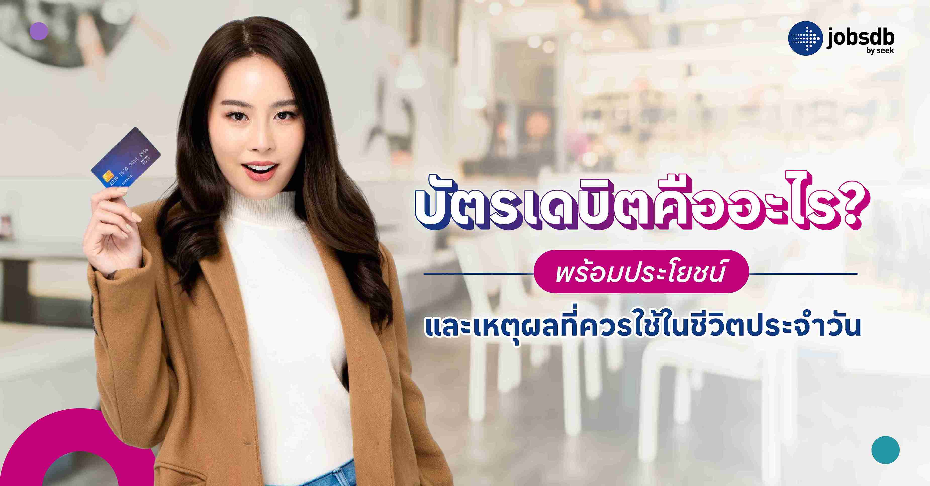หากใครกำลังมองหาโอกาสในการสร้างรายได้ที่มั่นคง เพื่อบริหารการเงินได้อย่างมีประสิทธิภาพ สามารถค้นหางานที่เหมาะกับตนเองได้ที่ JobsDB แหล่งรวมตำแหน่งงานจากบริษัทชั้นนำหลากหลายอุตสาหกรรมเพื่อให้คุณสามารถใช้บัตรเดบิตได้อย่างคล่องตัวและตอบโจทย์ไลฟ์สไตล์ของตนเองได้มากที่สุดในทุกวัน!