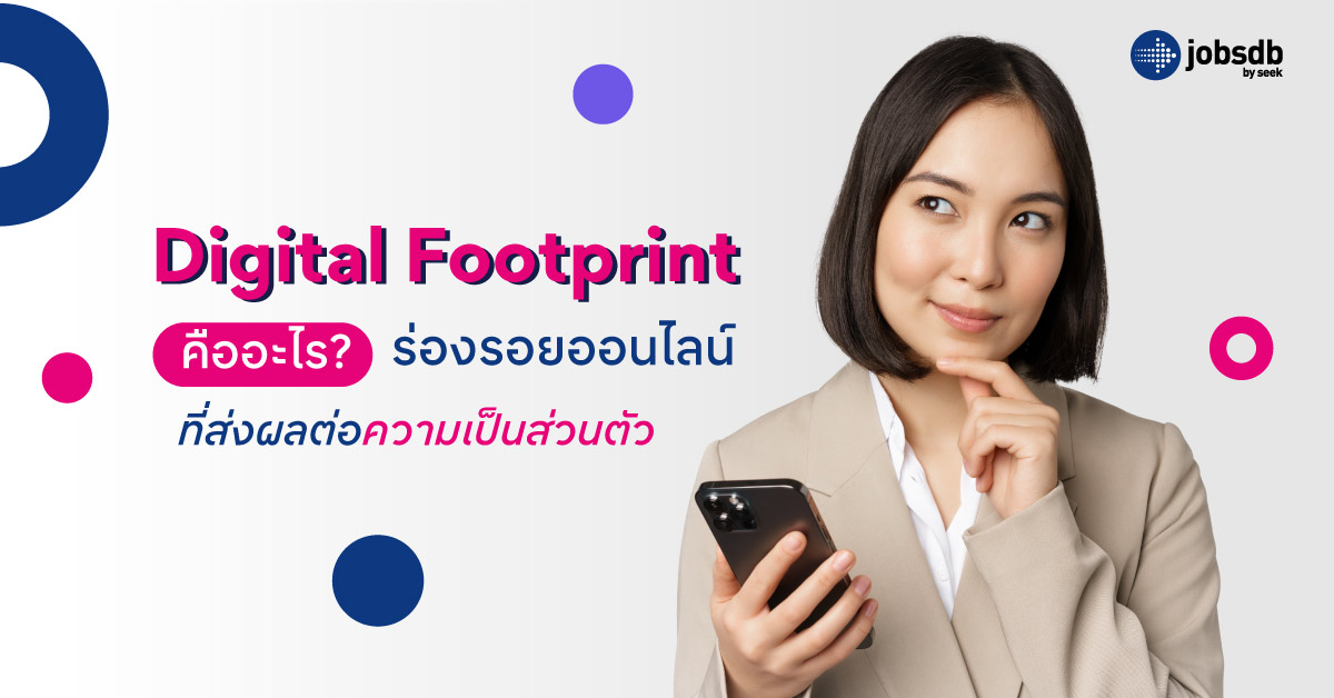 Digital Footprint คือ ร่องรอยข้อมูลที่เกิดจากการใช้งานออนไลน์ ซึ่งมีทั้งข้อดีและข้อจำกัด หากบริหารจัดการอย่างเหมาะสม สามารถใช้สร้างภาพลักษณ์ที่ดี เพิ่มโอกาสทางอาชีพ และเสริมความน่าเชื่อถือได้ แต่หากไม่ระมัดระวัง อาจเสี่ยงต่อการละเมิดความเป็นส่วนตัว หรือส่งผลเสียต่อโอกาสในอนาคต การตั้งค่าความเป็นส่วนตัวให้รัดกุม ลบข้อมูลที่ไม่จำเป็น และใช้แพลตฟอร์มอย่างมืออาชีพ เช่น LinkedIn หรือเว็บไซต์สมัครงานอย่าง JobsDB ช่วยให้โปรไฟล์ดูน่าสนใจและเข้าถึงโอกาสงานที่เหมาะสมมากขึ้น