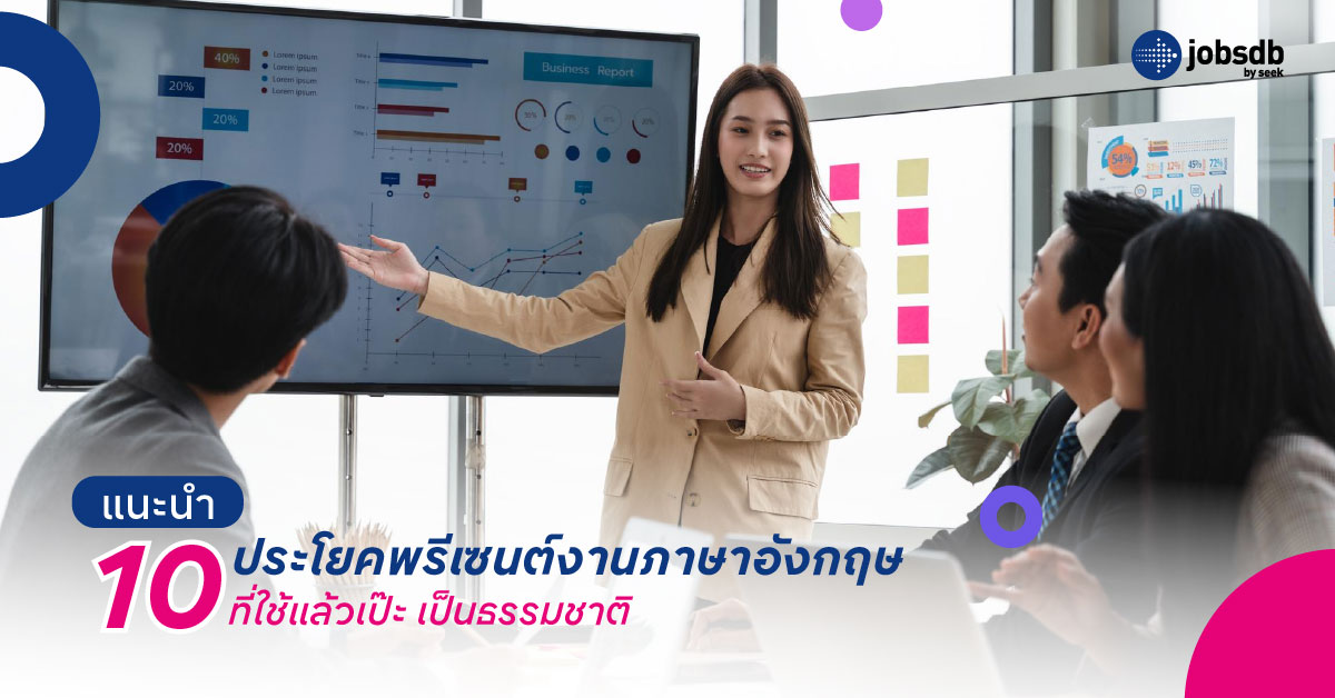 ยุคปัจจุบัน ทักษะภาษาอังกฤษถือเป็นสิ่งจำเป็นสำหรับการทำงาน ไม่ว่าจะอยู่ในสายอาชีพใด ภาษาอังกฤษก็เป็นเครื่องมือสำคัญที่ช่วยเพิ่มโอกาสและประสิทธิภาพในการทำงานอย่างหลีกเลี่ยงไม่ได้ โดยเริ่มตั้งแต่การแนะนำตัวภาษาอังกฤษ สัมภาษณ์งานภาษาอังกฤษ การพรีเซนต์งานเป็นภาษาอังกฤษนั้นเป็นสิ่งที่คนวัยทำงานต้องเจอ และหลายคนอาจรู้สึกประหม่า ไม่มั่นใจ บทความนี้จึงแนะนำประโยคพรีเซนต์งานภาษาอังกฤษมาฝากกัน