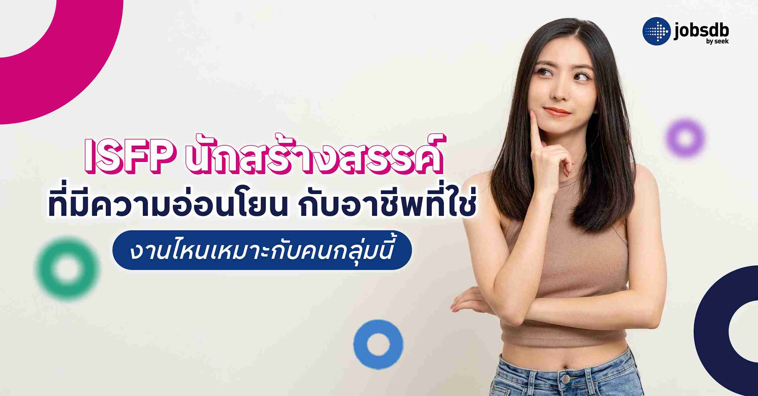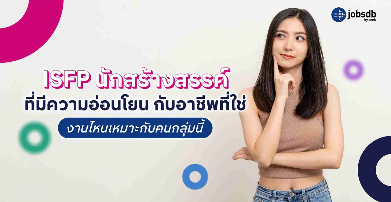 ได้รู้กันไปแล้วว่าอาชีพที่เหมาะสมกับชาว ISFP คืออาชีพประเภทไหน ดังนั้น มาหางานที่ Jobsdb แล้วค้นหาอาชีพที่เหมาะกับ ISFP เพื่อช่วยเพิ่มประสิทธิภาพในการหางาน มาใช้ฟังก์ชันค้นหาตำแหน่ง ที่ตั้งที่ทำงาน และเงินเดือน เพื่อค้นหาอาชีพที่ตรงกับความชอบ และจุดแข็งของตัวเองได้อย่างแม่นยำ