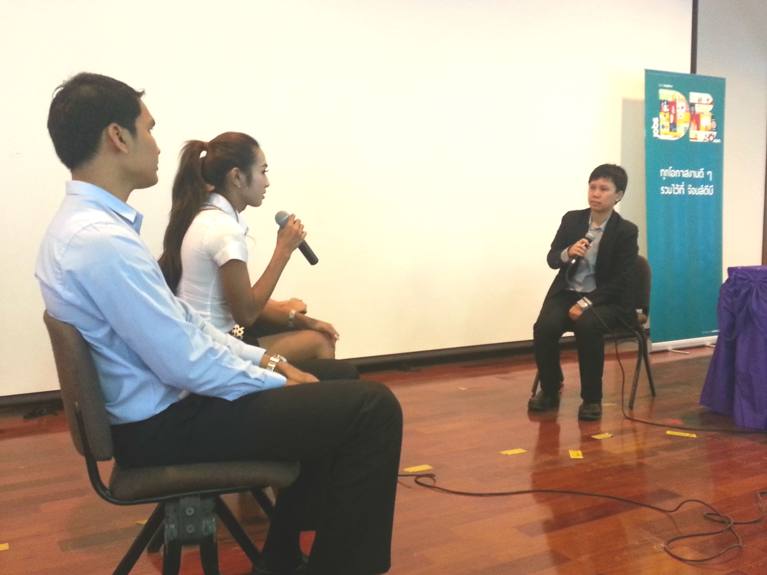 วันที่ 12 พฤษภาคม 2556 jobsdb ได้รับเชิญจากคณะบริหารธุรกิจ มหาวิทยาลัยเทคโนโลยีราชมงคลตะวันออก วิทยาเขตจักรพงษภูวนารถ เข้าร่วมงานปัจฉิมนิเทศ เพื่อร่วมส่งบัณฑิตใหม่ออกสู่โลกแห่งการทำงานอย่างมั่นใจ โดยในงานนี้คุณสุทธาสินี กัทลีโรจน์วงศ์ วิทยากรจาก jobsdb ได้ให้คำแนะนำเกี่ยวกับการเตรียมความพร้อมในการสมัครงาน และการทำงานอย่างมืออาขีพที่น้อง ๆ สามารถนำไปใช้ได้จริงรวมทั้งยังมีการจำลองสถานการณ์การสัมภาษณ์งานจริงอย่างเข้มข้น เพื่อให้น้อง ๆ เตรียมรับมือกับคำถามสัมภาษณ์งานที่พบบ่อยได้ดีที่สุด  นอกจากนี้ น้อง ๆ ที่เข้าร่วมงานดังกล่าวยังได้รับคู่มือหางานจาก jobsdb สำหรับติวเข้มด้วยตัวเองง่าย ๆ ที่บ้านอีกด้วย