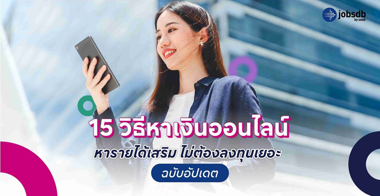 ในปัจจุบันผู้คนทำงานออนไลน์กันมากขึ้น ใครชอบทำงานที่บ้าน แล้วอยากหางานออนไลน์หรือหารายได้เสริม แต่กลัวโดนหลอกไปทำงานผิดกฎหมาย บทความนี้ได้รวบรวมวิธีหาเงินออนไลน์มาให้แล้ว ทำได้ง่าย แถมไม่ต้องไม่ต้องลงทุนเยอะด้วย เพียงแค่มีมือถือและอินเตอร์เน็ตแรงๆ ก็สามารถทำได้จากทุกที่บนโลก