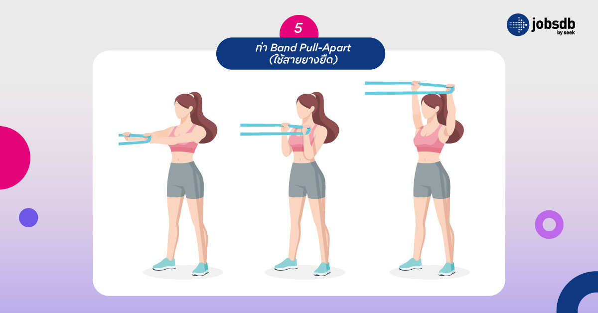 5. ท่า Band Pull-Apart (ใช้สายยางยืด)