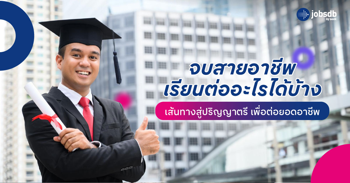 ไม่ว่าคุณจะเลือกเรียนต่อเพื่อยกระดับความรู้ หรือก้าวเข้าสู่เส้นทางอาชีพทันทีหลังเรียนจบ สายอาชีพก็เป็นพื้นฐานที่ช่วยให้คุณมีความเชี่ยวชาญตรงสายงาน และเป็นที่ต้องการของตลาดแรงงานอยู่เสมอ และถ้าคุณกำลังมองหาโอกาสใหม่ๆ ที่จะช่วยให้คุณบรรลุเป้าหมายในชีวิต อย่าลืมมาหางานผ่าน Jobsdb แพลตฟอร์มหางานที่รวบรวมตำแหน่งงานหลากหลายสาขา ไม่ว่าจะเป็นงานด้านเทคนิค งานบริการ งานไอที หรืองานธุรการ ที่นี่คือจุดเริ่มต้นสำคัญของเส้นทางอาชีพที่ใช่สำหรับคุณ!