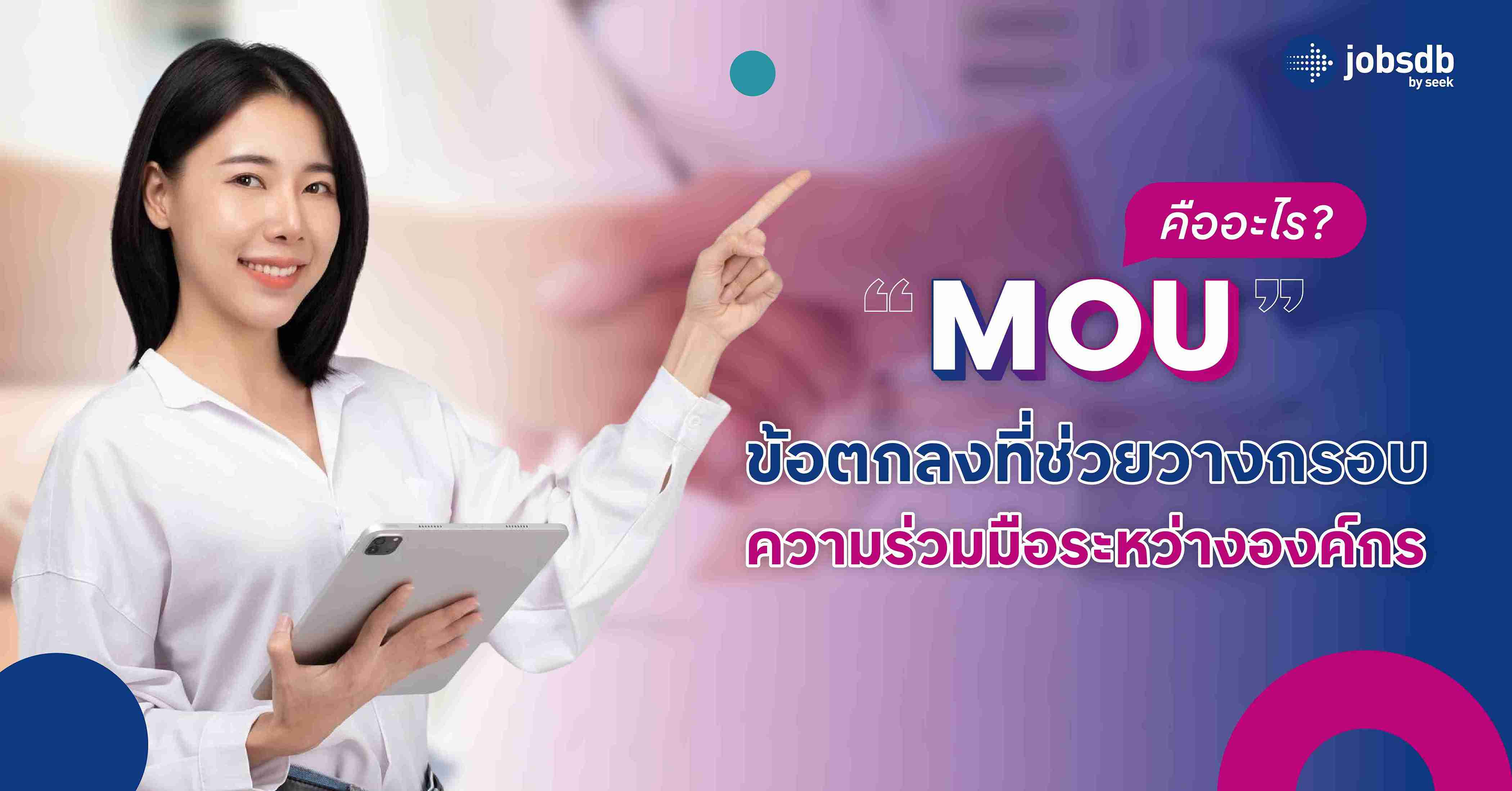 หากคุณกำลังมองหางานในองค์กรที่เน้นการประสานงานและโครงการพิเศษ ลองสมัครงานผ่าน Jobsdb ซึ่งมีตำแหน่งงานที่เกี่ยวข้องกับการจัดทำ MOU และงานด้านความร่วมมือต่างๆ ให้เลือกมากมาย
