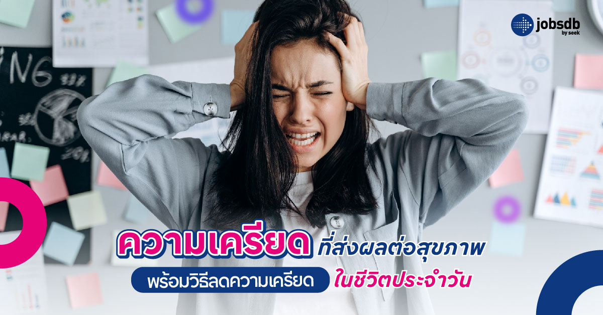 ความเครียดเป็นภาวะที่ส่งผลกระทบทั้งต่อร่างกายและจิตใจ หากเกิดขึ้นสะสมต่อเนื่องอาจนำไปสู่ปัญหาสุขภาพ เช่น ปวดหัว นอนไม่หลับ หรือวิตกกังวลเรื้อรัง นอกจากนี้ยังส่งผลต่อการทำงาน เช่น สมาธิลดลง ประสิทธิภาพแย่ลง หรือเกิดปัญหากับเพื่อนร่วมงาน